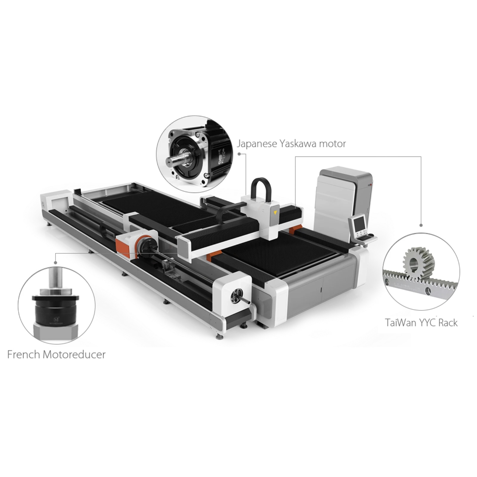 دستگاه برش لیزر تک میز مدل LNR با قابلیت روتاری (LF‑۳۰۱۵ LNR) یک راهحل همهجانبه برای کارگاههایی است که نیاز به برش همزمان ورق فلزی و پروفیلهای لولهای دارند. با دامنه توان لیزر فوقالعاده گسترده از ۱۰۰۰ تا ۱۲۰۰۰ وات، این دستگاه توان برش فولاد کربن، فولاد ضد زنگ، آلومینیوم، برنج و دیگر آلیاژها را در ضخامتهای گوناگون دارا است. ترکیب سیستم تک میز با محور روتاری، علاوه بر صرفهجویی در فضا و سرمایهگذاری اولیه، فرآیند تولید را نیز بهینه میکند.